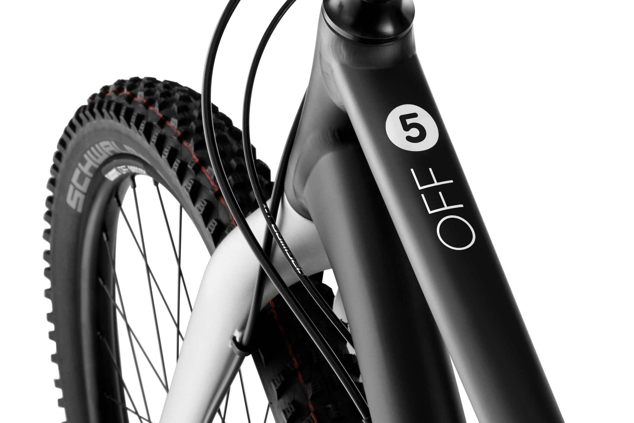 Los ejes pasantes de 15mm garantizan una rigidez fuera de toda duda en las ruedas, los frenos hidráulicos de 140 y 160 (OFF6) proporcionan una capacidad de frenada más que suficiente en las bajadas mas complicadas.