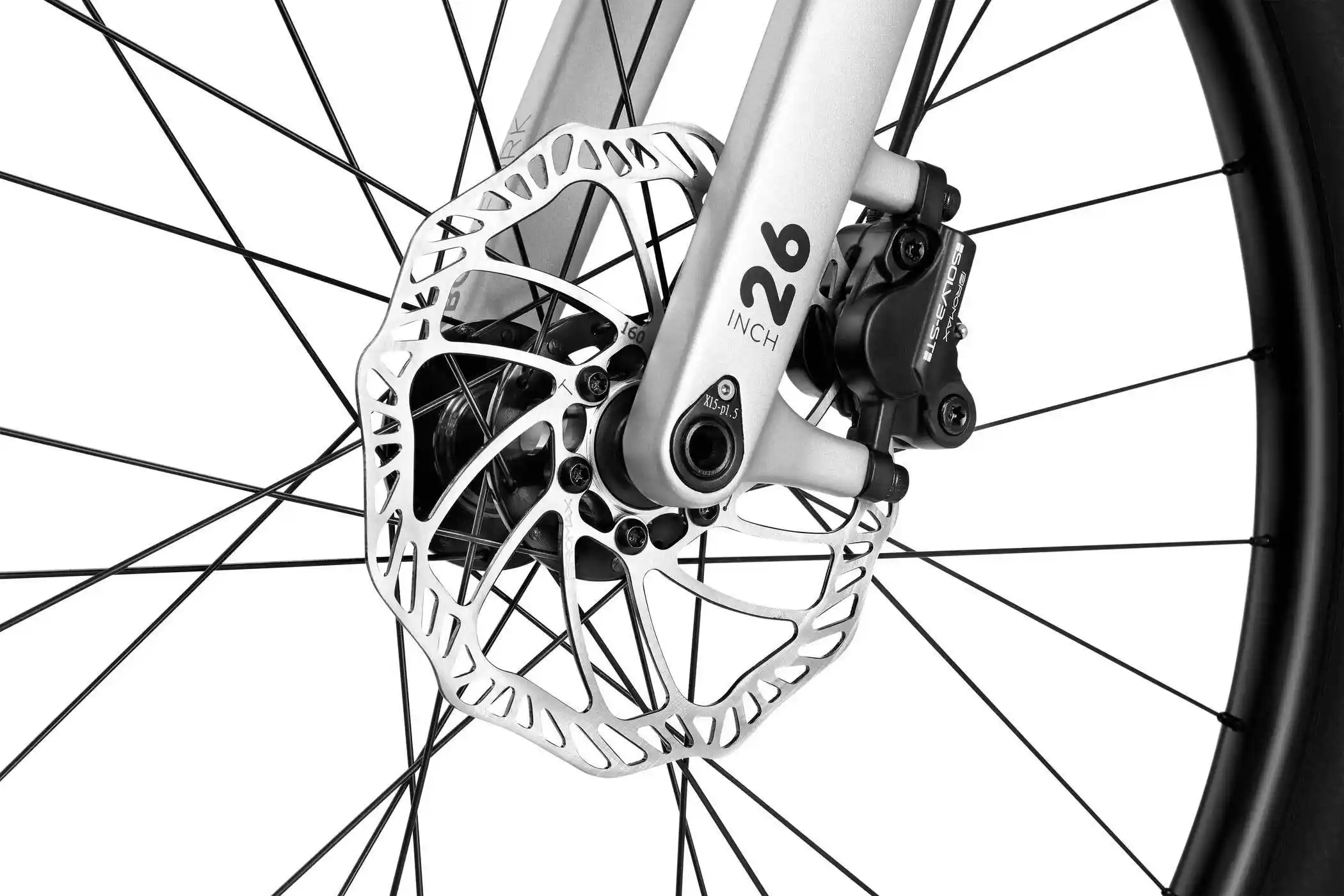 Los ejes pasantes de 15mm garantizan una rigidez fuera de toda duda en las ruedas, los frenos hidráulicos de 140 y 160 (OFF6) proporcionan una capacidad de frenada más que suficiente en las bajadas mas complicadas.